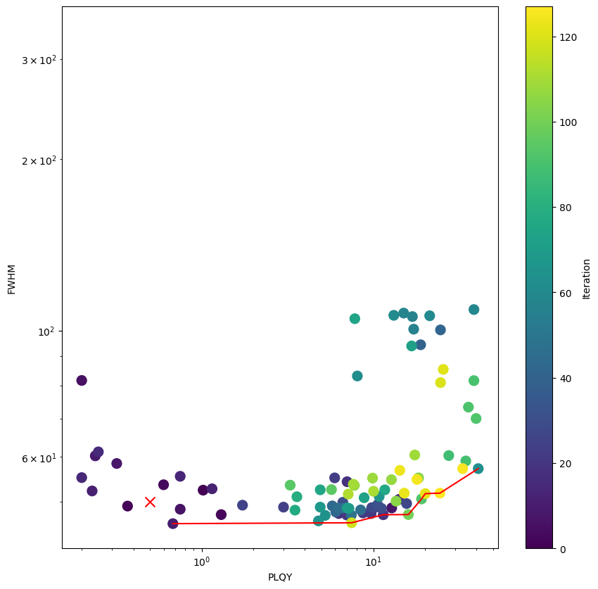 Design of Experiment: perovskite thin film optimization PLQY and FWHM (pymoo)